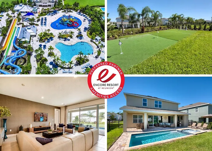 Featuring a heated swimming pool for guests' relaxation, the 6-bedroom Chic Home By Rentyl With Mini Soccer Field & Golf Near Disney - 7715F is located around 7 km from ESPN Wide World of Sports Complex. Featuring a patio, this residential villa is situated not too far from Orlando Tree Trek Adventure Park Zip Line.